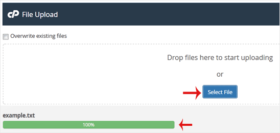 5. Clique em Selecionar arquivo e escolha o arquivo que deseja enviar do seu computador. Clique em abrir e o processo de upload começará. Você também pode arrastar e soltar arquivos do seu computador na caixa de upload.
