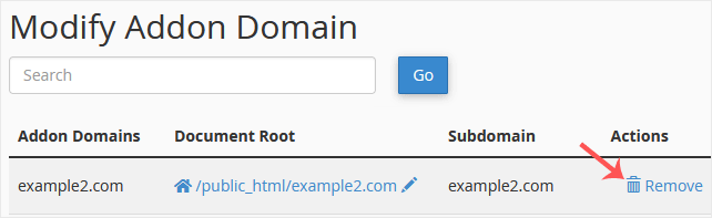 Você deve ver uma mensagem informando que seu domínio adicional foi removido.