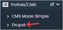4. No lado esquerdo, localize a categoria Portal/CMS . Clique nele e depois no link Drupal que aparece. 5. Clique em Instalar . 6. Preencha os campos necessários nos campos de configuração de software :