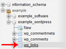 4. Selecione a tabela apropriada que deseja excluir. Se você for deletar a tabela "wp_links", escolha-a.