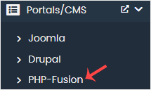 4. No lado esquerdo, localize a categoria Portal/CMS . Clique nele e depois no link PHP-Fusion que aparece. 5. Clique em Instalar . 6. Preencha os campos necessários nos campos de configuração de software :