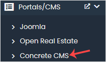 4. No lado esquerdo, localize a categoria Portal/CMS . Clique nele e depois no link Concrete CMS que aparece. 5. Clique em Instalar . 6. Preencha os campos necessários nos campos de configuração de software :