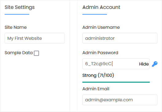 - Site Name: Enter the name of your website, such as Concrete CMS.