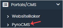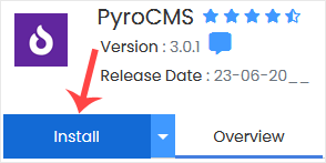 4. No lado esquerdo, localize a categoria Portal/CMS . Clique nele e depois no link PyroCMS que aparece. 5. Clique em Instalar . 6. Preencha os campos necessários nos campos de configuração de software :