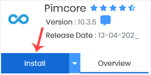 4. No lado esquerdo, localize a categoria Portal/CMS . Clique nele e depois no link Pimcore que aparece. 5. Clique em Instalar . 6. Preencha os campos necessários nos campos de configuração de software :