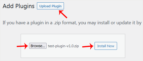 3. Clique em Upload Plugin e depois em Browse . Escolha o arquivo zip do seu plug-in e clique em Instalar agora .