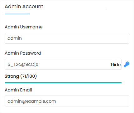 - Admin Username: Your new liveSite username (for security reasons, do not use the administrator or the admin username).