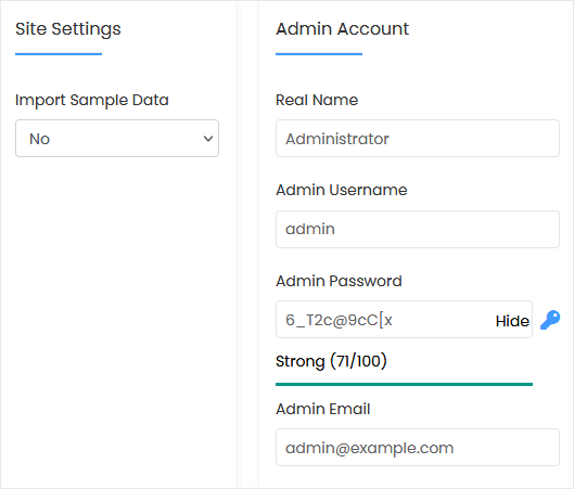 Observação: Copie o nome de usuário e a senha do administrador para o Bloco de Notas. Você precisará deles para acessar a área de administração do seu site PluXml posteriormente.