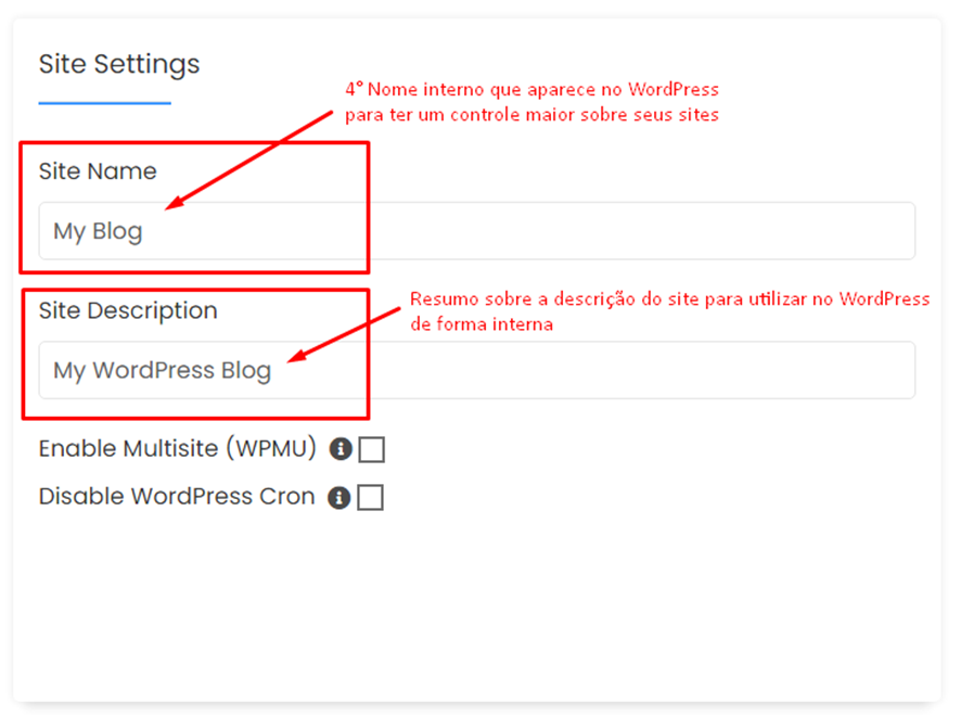 - Site Name (Nome do Site): Digite o nome do seu site.