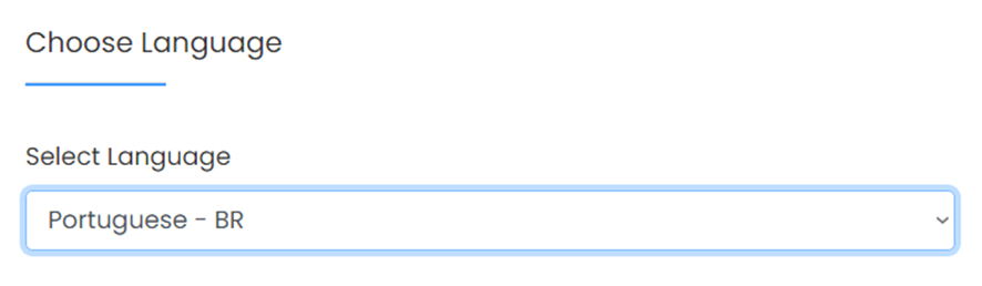 8° Na seção Choose Language (Escolher idioma), selecione o idioma para o painel do WordPress.