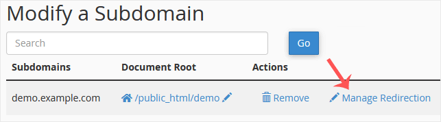 3. Na lista Modificar um subdomínio , você pode ver uma lista de subdomínios.